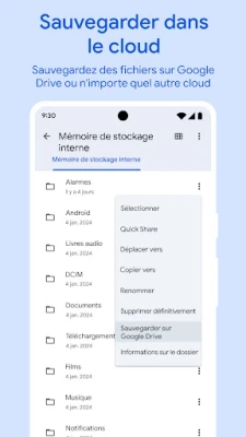 Files by Google n'est pas seulement un gestionnaire ; c'est aussi un assistant intelligent. L'application propose des recommandations personnalisées pour optimiser votre espace, vous alerte sur les fichiers volumineux et suggère des actions pertinentes pour maintenir la propreté de votre appareil. Libérez votre mémoire interne en sauvegardant facilement vos données sur Google Drive, une carte SD ou d'autres services de stockage cloud compatibles. Conçue par Google pour l'efficacité, cette solution utilise moins de 20 Mo d'espace sur votre appareil, est dépourvue de publicités intrusives et offre une interface utilisateur épurée et performante, pour une expérience utilisateur sans compromis.
