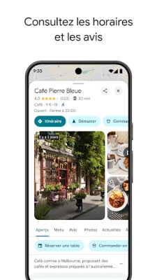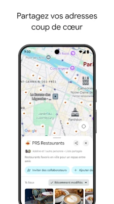 Anticipez chaque détail de vos voyages et sorties bien avant d'y être. Avec Street View, visualisez votre destination avec une clarté impressionnante, repérant les parkings ou les entrées spécifiques. Plongez dans une expérience encore plus riche grâce à Immersive View, qui vous offre une perspective 3D fidèle des monuments, parcs et itinéraires, incluant même la météo locale pour une préparation impeccable. Organisez vos coups de cœur en listes personnalisées, faciles à partager, et découvrez instantanément des activités et des lieux d'intérêt à proximité, enrichis par les avis et photos d'une communauté active. Maps facilite aussi vos repas et séjours : commandez à emporter, faites-vous livrer, ou réservez votre table et votre chambre en quelques clics. Et pour les zones moins bien couvertes, les cartes hors connexion sont là pour vous assurer de toujours trouver votre chemin.