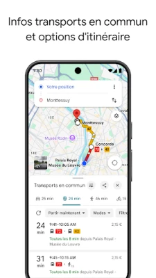Explorez chaque recoin du globe avec une aisance inégalée grâce à Maps, votre boussole numérique essentielle. Que vos préférences de déplacement soient axées sur l'efficacité énergétique en voiture, la rapidité des transports en commun ou la liberté d'un vélo partagé, Maps s'adapte à chaque besoin. Bénéficiez d'une navigation en temps réel d'une précision remarquable, intégrant des instructions vocales et visuelles détaillées pour vous guider sans accroc. Le système intelligent de Maps ajuste dynamiquement votre parcours en fonction des embouteillages, des incidents et des travaux routiers, vous assurant d'arriver à destination toujours par le chemin le plus rapide et le plus fiable. Que ce soit en bus, en train, en covoiturage ou même en trottinette électrique, obtenez toutes les informations nécessaires pour une mobilité urbaine sans tracas.