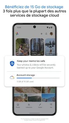 Bienvenue dans l'univers de Google Photos, la solution ultime pour chérir, organiser et revivre vos moments les plus précieux. Chaque compte Google bénéficie d'une généreuse allocation de 15 Go d'espace de stockage cloud gratuit*, un volume exceptionnel pour centraliser toutes vos photos et vidéos. Grâce à la sauvegarde automatique, vos souvenirs sont instantanément mis en lieu sûr, accessibles depuis n'importe quel appareil et protégés par l'infrastructure de sécurité avancée de Google. Dites adieu aux soucis d'espace sur votre téléphone en libérant facilement de la mémoire, tout en regroupant l'ensemble de vos clichés dispersés dans différentes applications et galeries en un seul et même endroit harmonieux.