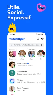Messenger est l'application de messagerie gratuite pour communiquer avec tous, partout. Restez en contact avec vos proches, explorez vos centres d'intérêt et développez votre communauté. Partagez votre humeur au-delà des mots, le tout dans une seule application intuitive.