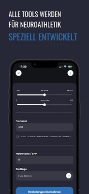 Au cœur de neurally réside un éventail de fonctionnalités digitales à la pointe. L'application excelle en offrant un arsenal d'outils, des plus connus aux innovations HAIVE, tous conçus pour la Thérapie Neurocentrique (NCT). Explorez le Générateur de Tonalités précis jusqu'à 1 000 HZ, combinable de manière unique avec d'autres modules pour une synergie thérapeutique sans précédent. Maîtrisez l'entraînement OKN avec des paramètres personnalisables de couleurs et de symboles, perfectionnez la respiration avec l'Entraîneur Respiratoire détaillé, ou utilisez le Générateur d'Exercices pour créer des séquences complexes. L'ensemble Basique comprend également des graphiques dynamiques pour la coordination et les tests de Stroop, ainsi que la stabilisation du regard, tandis que l'offre Pro étend les capacités avec un Générateur de Tonalités jusqu'à 6 000 HZ, des modules pour les saccades et anti-saccades, et des tests cognitifs avancés comme N-Back et Visual Vertical.