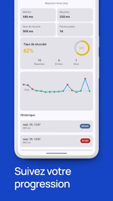 Découvrez Temps de Réaction : Test & Jeu, l'outil essentiel pour propulser vos capacités cognitives au-delà des limites. Bien plus qu'un simple divertissement, cette application est un entraîneur cérébral sophistiqué, conçu pour affûter vos réflexes et optimiser votre agilité mentale. Que vous soyez un athlète d'e-sport cherchant à dominer la compétition, un sportif visant une meilleure coordination œil-main, un conducteur désireux d'améliorer sa réactivité sur la route, ou simplement quelqu'un souhaitant maintenir une acuité mentale quotidienne, Temps de Réaction : Test & Jeu est votre allié pour une performance accrue.