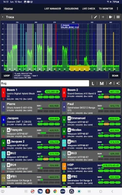 La gestion des émetteurs devient une tâche intuitive grâce à l'intelligence intégrée de TXAdvance. Coordonnez un nombre illimité d'émetteurs de n'importe quelle marque, bénéficiant d'une analyse automatique et exhaustive des intermodulations critiques (2TX3ème, 2TX5ème, 2TX7ème ordre, et 3TX3ème ordre). Visualisez en un clin d'œil les canaux disponibles, le niveau de bruit et l'état d'intermodulation de chaque unité. Pour une efficacité maximale, le mode automatique de TXAdvance peut identifier les fréquences optimales en évitant les conflits potentiels, tandis que le choix manuel offre une flexibilité totale. De plus, la fonction "Live Check" convertit votre appareil en un analyseur RF en temps réel pour une surveillance dynamique continue.
